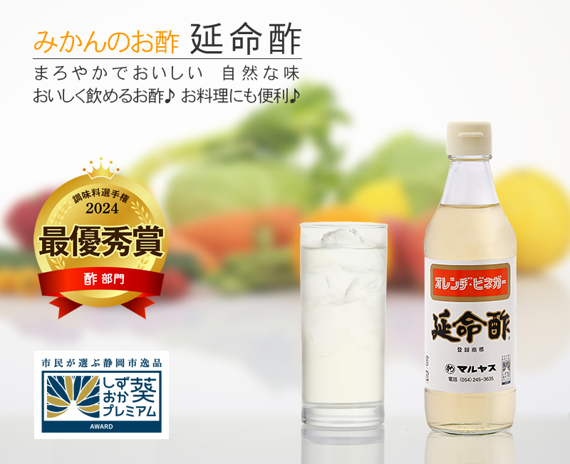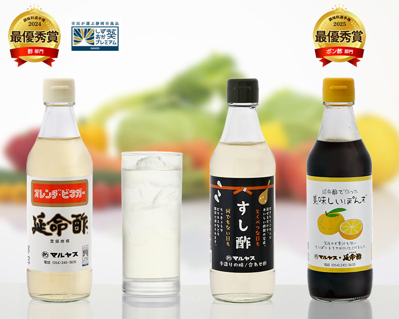 贈り物用の無地白箱(段ボール)に入れ、梱包材で保護し、保護された物を配送用の箱に入れてお届けいたします。ご希望に応じて、エコ包装やのし付け(表書き、名入れ可能)を承ります。 【延命酢について】 マルヤスの延命酢は、静岡産のみかん果汁を原料に酢酸発酵させた果実酢と米酢とはちみつなどを加えたおいしい酢です。 「100年先まで大切に残していきたい」と思う商品を市民が選ぶ、静岡市の逸品「しずおか葵プレミアムアワード2019」にて、延命酢が、静岡市の地域ブランドとして認証されました。 ※「延命酢330ml」は第15回調味料選手権2024 酢部門 最優秀賞を受賞しました。 【すし酢について】 マルヤスの『すし酢』は静岡のお寿司屋さんのプロの味を忠実に再現したすし用合わせ酢です。 酢の物に! お寿司に! らっきょうの酢漬けに!ドレッシングに! 【延命酢で作った美味しいぽんずについて】 ツンとしない、まろやかなこだわりのおいしい酢「延命酢」をベースに「国産ゆず果汁」を使用し、食材の持つ旨味や風味を消してしまわない、とってもまろやかでやさしいぽんずに仕上げました。 とても優しい味にしましたので、酸味が苦手のパパさん、小さいお子さまからお年寄りまで、家族みんなで楽しめるぽんずです。 ※「延命酢で作った美味しいぽんず330ml」は第16回調味料選手権2025 ポン酢部門 最優秀賞を受賞しました。 延命酢についてのご注意点 ※延命酢は、天然のはちみつや、静岡産みかんの果汁を原材料に製造し保存料等を使用しておりません。その為、開封後は必ず冷蔵庫に保存し、賞味期限にかかわらずお早めにお召し上がりください。 ※みかんの繊維が混ざることがありますが、品質上問題はありません。 ※原材料に蜂蜜を使用していますので、1歳未満の乳児には与えないでください。 すし酢についてのご注意点 ※『すし酢』は、合成甘味料、保存料等を使用しておりません。その為、開封後は必ず冷蔵庫に保存し、賞味期限にかかわらずお早めにお召し上がりください。 延命酢で作った美味しいぽんずについてのご注意点 ※原料が国産丸大豆醤油のため、製造した時期により色度(色の濃さ)がかなり違う場合がございますが、品質上問題はございません。 ※原材料に保存料等を使用しておりません。その為、開封後は必ず冷蔵庫に保存し、賞味期限にかかわらずお早めにお召し上がりください。 ※延命酢の原材料に蜂蜜を使用していますので、1歳未満の乳児には与えないでください。 |