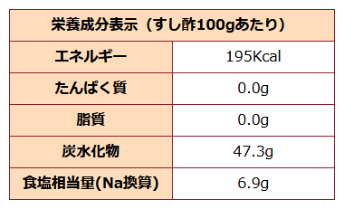 | 栄養成分表示(すし酢100gあたり) |