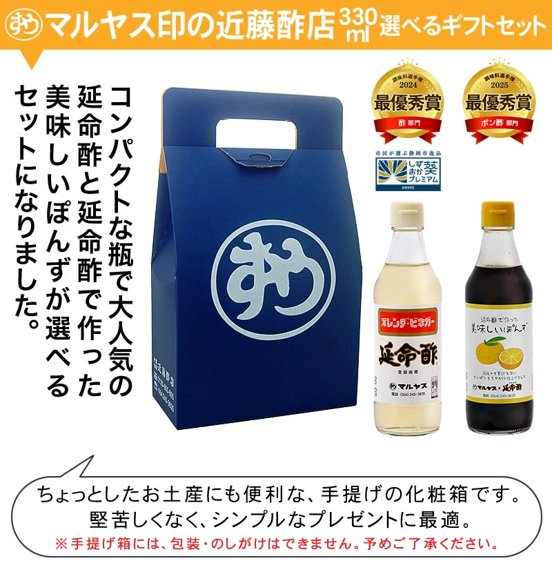 【化粧箱入り】【ギフト包装不可】【のしがけ不可】マルヤス近藤酢店 330ml選べるギフトセット 化粧箱入り【コンパクトサイズ瓶】 お中元・お歳暮ギフト