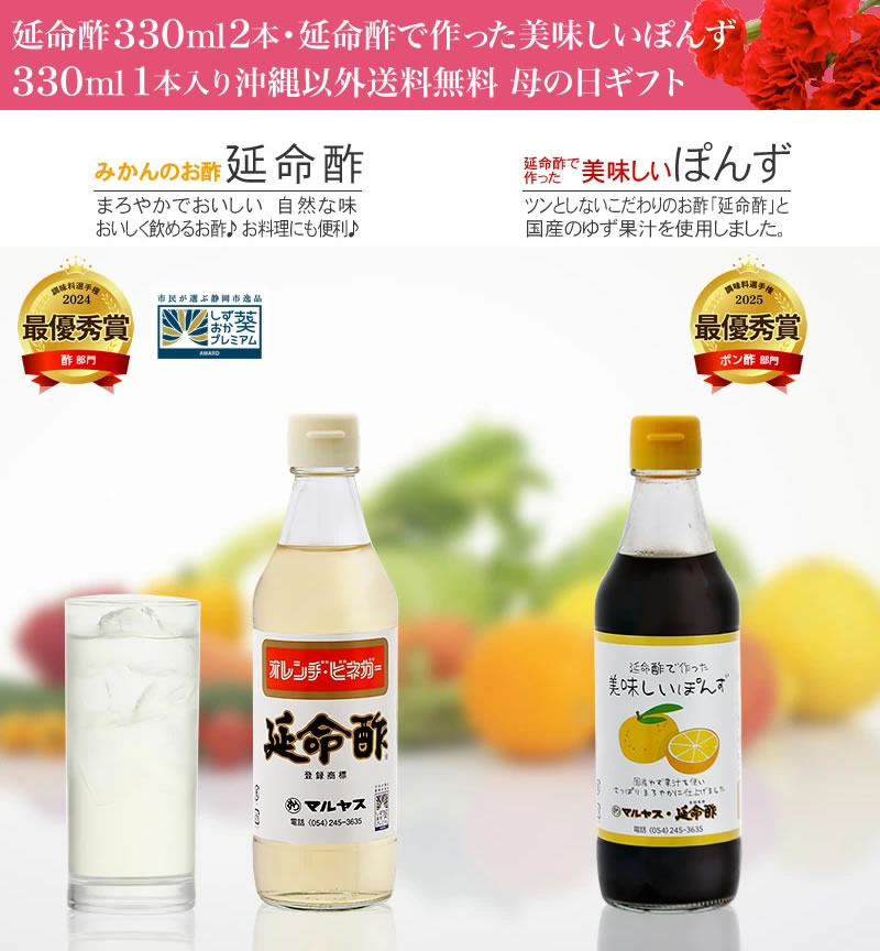 【母の日】延命酢330ml2本、延命酢で作った 美味しいぽんず330ml1本セット 沖縄以外送料無料 延命酢キャンディー付き 母の日ギフト
